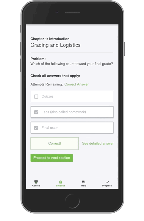 The goal of the project was to address design debt and redesign the UI to be more informative and intuitive so that users could easily navigate and complete courses.