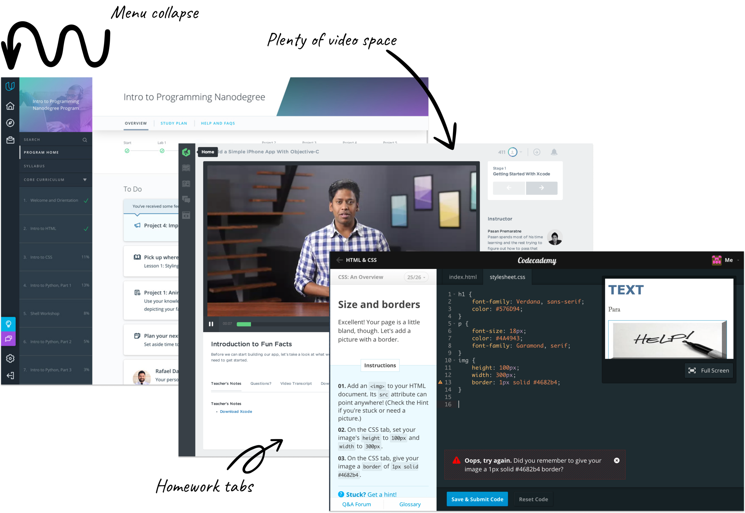 MongoDB University had a list of usability and design debt issues that reflected in their Support tickets queue. Users had a hard time finding deadlines, class handouts, and had general navigation issues making it difficult and discouraging to finish their course. Additionally, the application was not responsive, making it hard for users to learn on the go.